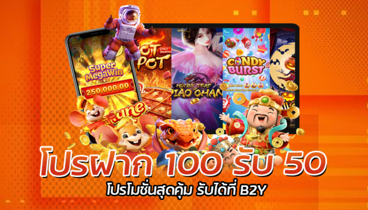 โปรฝาก 100 รับ 50 พบกับโปรโมชั่นสุดพิเศษที่ B2Y คุณจะได้รับโบนัสเมื่อฝากเงิน 100 บาทและได้รับ 50 บาทเพิ่มอีกทันที! หากคุณต้องการเข้าร่วมโปรโมชั่นที่ไม่เหมือนใครนี้เพื่อเพิ่มโอกาสในการชนะ, สมัครสมาชิกทันที! ตอนนี้คุณสามารถสมัครสมาชิกและเข้าร่วมโปรโมชั่น ฝาก 100 รับ 50 ได้ทันที! เพียงแค่กรอกข้อมูลส่วนตัวของคุณและทำการฝากเงิน 100 บาท คุณจะได้รับโบนัสเพิ่มอีก 50 บาทในบัญชีของคุณทันที! โบนัสที่คุณได้รับสามารถใช้ในการเล่นเกมคาสิโนต่างๆ ที่มีในเว็บไซต์ของเรา ซึ่งจะเพิ่มโอกาสในการชนะและสร้างความสนุกสนานให้กับคุณอย่างมากมาย!.